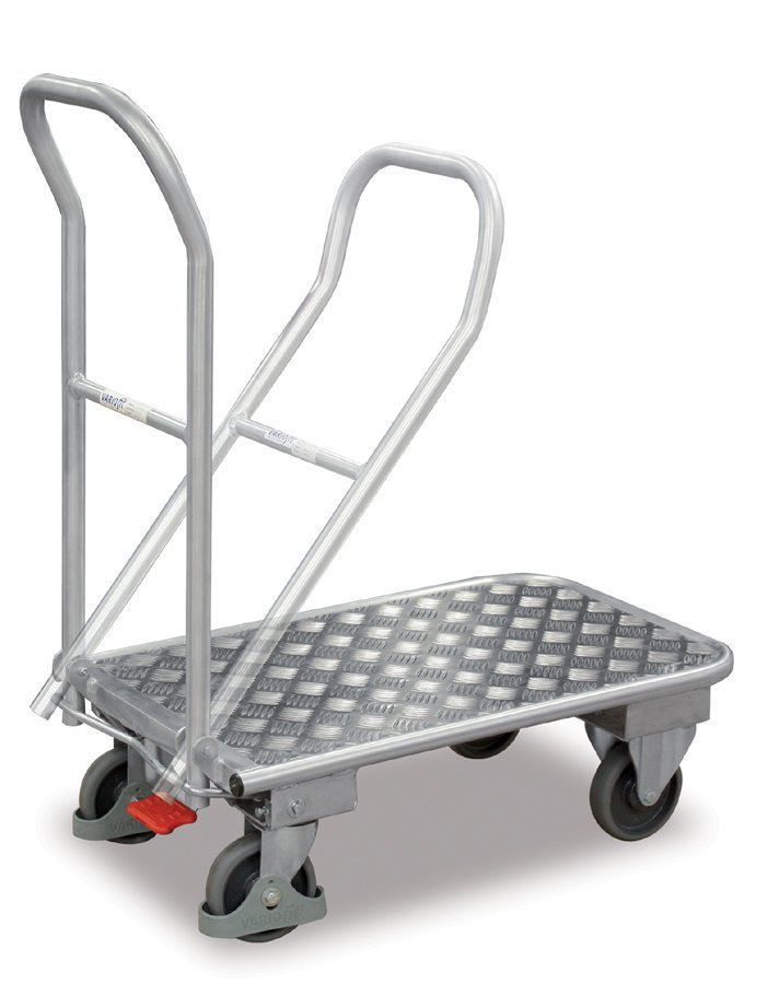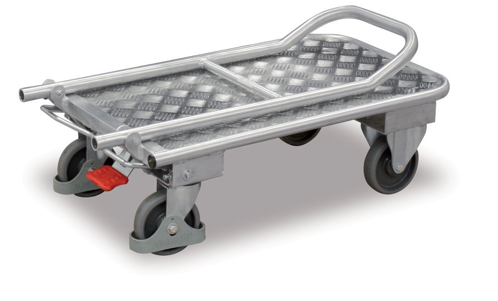 Dwupoziomowy składany wózek o nośności 150 kg. Spawana konstrukcja stalowa - malowana proszkowo na kolor niebieski RAL 5010. Powierzchnia załadunkowa drewniana - buk. Bardzo wytrzymałe gumowe koła. Wymiary: wysokość 965 x szerokość 905 x głębokość 450 mm.