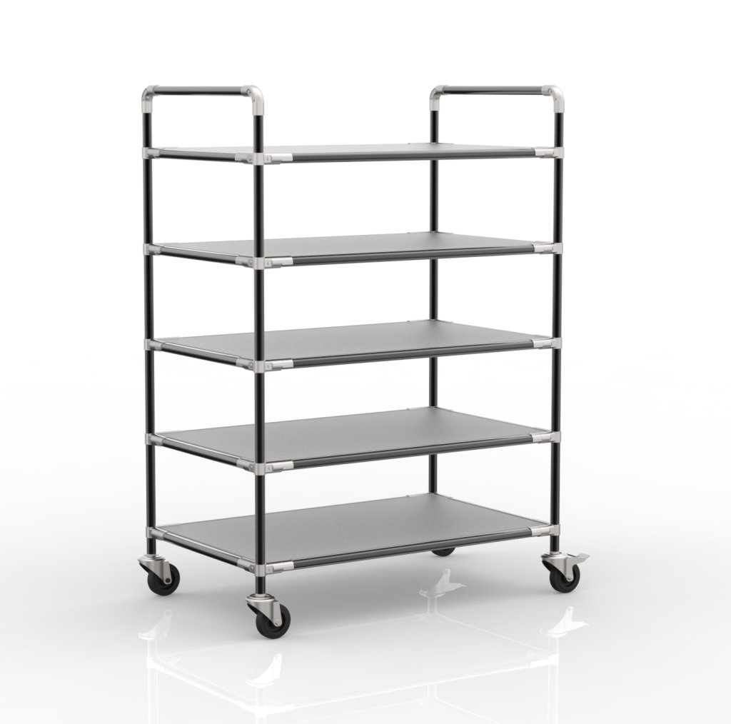 Antystatyczny wózek półkowy z rurowego systemu modułowego to idealny wybór do transportu towarów wrażliwych na wyładowania elektrostatyczne. W wózku znajduje się płyta laminowana ESD o grubości 18 mm. Wymiary 1530 x 1268 x 868 mm, średnica koła 100 mm.