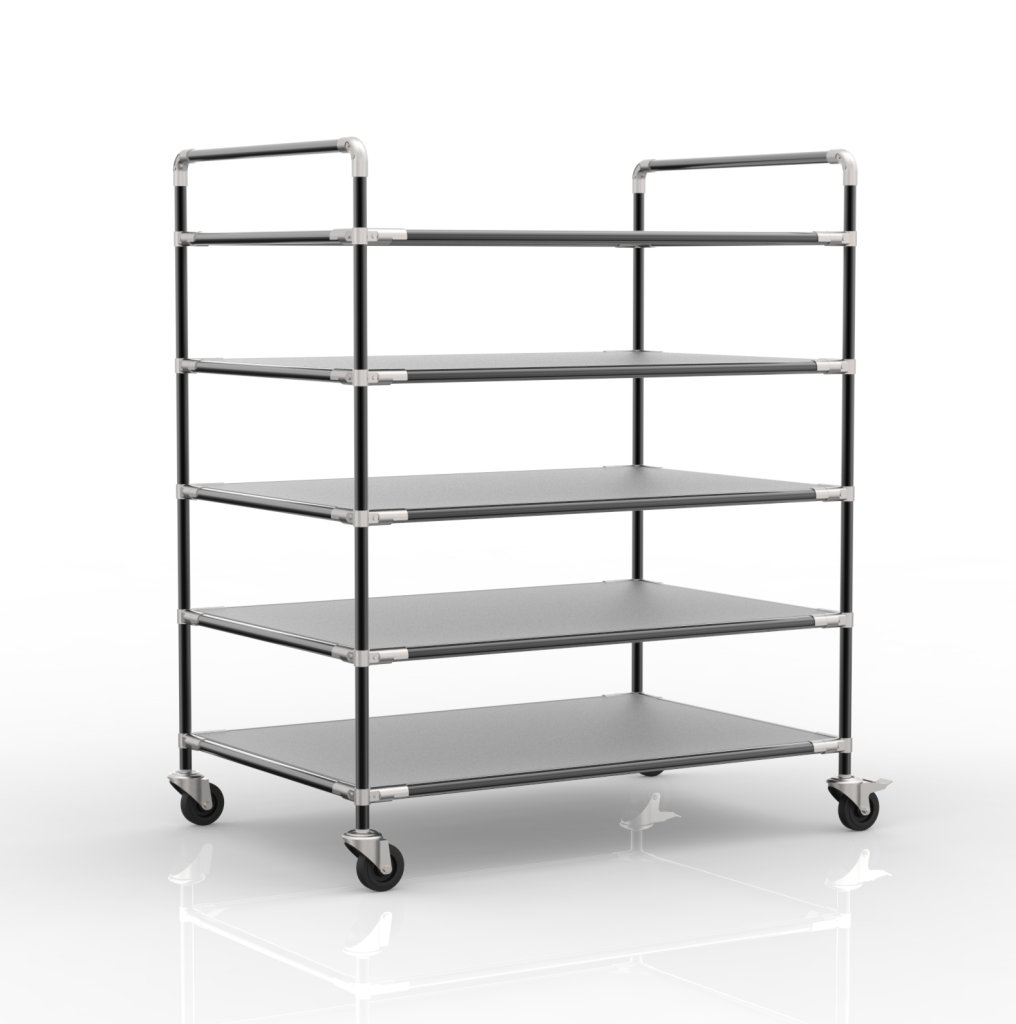 Antystatyczny wózek półkowy z rurowego systemu modułowego to idealny wybór do transportu towarów wrażliwych na wyładowania elektrostatyczne. W wózku znajduje się płyta laminowana ESD o grubości 18 mm. Wymiary 1530 x 918 x 568 mm, średnica koła 100 mm.