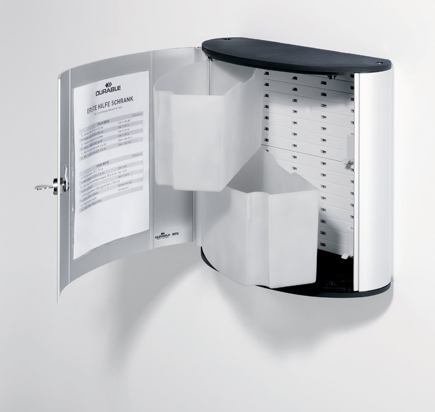 Apteczka wykonana z wysokiej jakości aluminium w ponadczasowym, eleganckim designie. Szafkę można przykręcić do ściany. Zawartość jest zabezpieczona przed kurzem, wilgocią i wysokimi temperaturami. Wymiary wys. 280 x szer. 302 x gł. 118 mm.