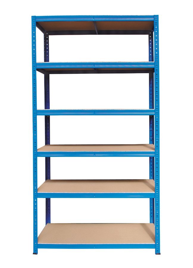 Regał półkowy metalowy, lakierowany, kolor niebieski RAL 5017. 6 x półki z płyty wiórowej, ze wzmocnieniem. Wymiary (wys. x szer. x gł.) 2000 x 1000 x 500 mm, nośność półki 150 kg, nośność całkowita 900 kg.