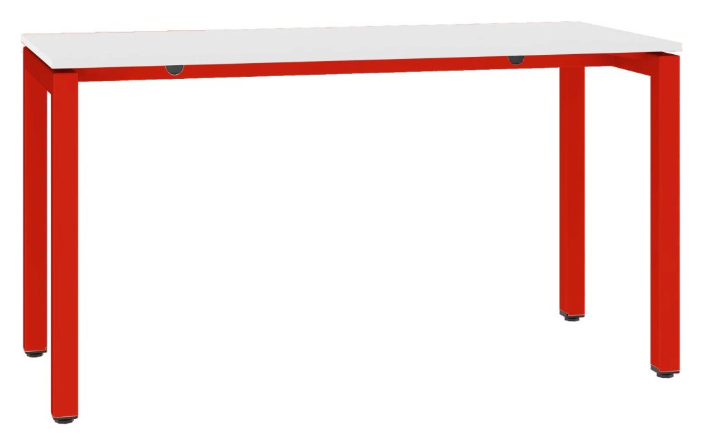 Designerskie biurko biurowe odpowiednie do biur, sal konferencyjnych i otwartych przestrzeni. Profile konstrukcyjne kwadratowe 50 x 50 mm, kolor do wyboru z odcieni RAL. Płyty laminowane o grubości 18 mm z krawędzią, istnieje możliwość wyboru koloru płyty. Nogi posiadają stopki prostujące umożliwiające regulację wysokości. Wysokość 745 - 770 mm, szerokość 1400 mm, głębokość 600 mm.