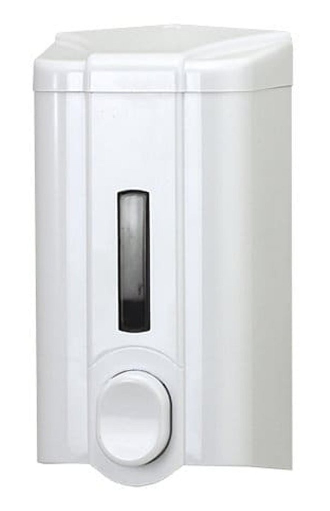 Dozownik mydła w płynie z praktycznym celownikiem do sprawdzania wypełnienia w kolorze białym. pełny opis i parametry