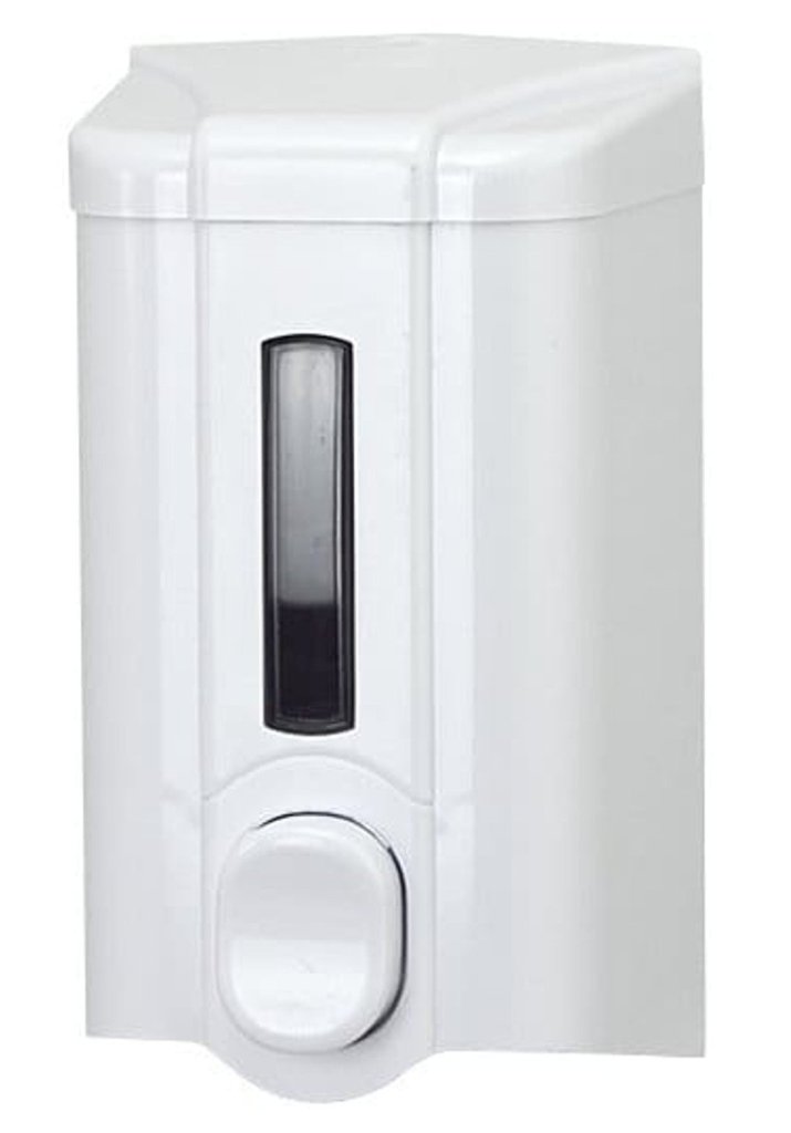 Dozownik mydła w płynie z praktycznym celownikiem do sprawdzania wypełnienia w kolorze białym. pełny opis i parametry