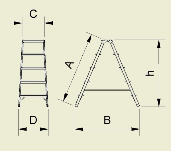 Drabina aluminiowa dwustronna Eurostyle, ilość stopni 2x5, maksymalna wysokość 1,03 m, szerokość 461 mm. Nośność 150 kg. Schody 922, 923 - DOSTAWA W CIĄGU 5 DNI.