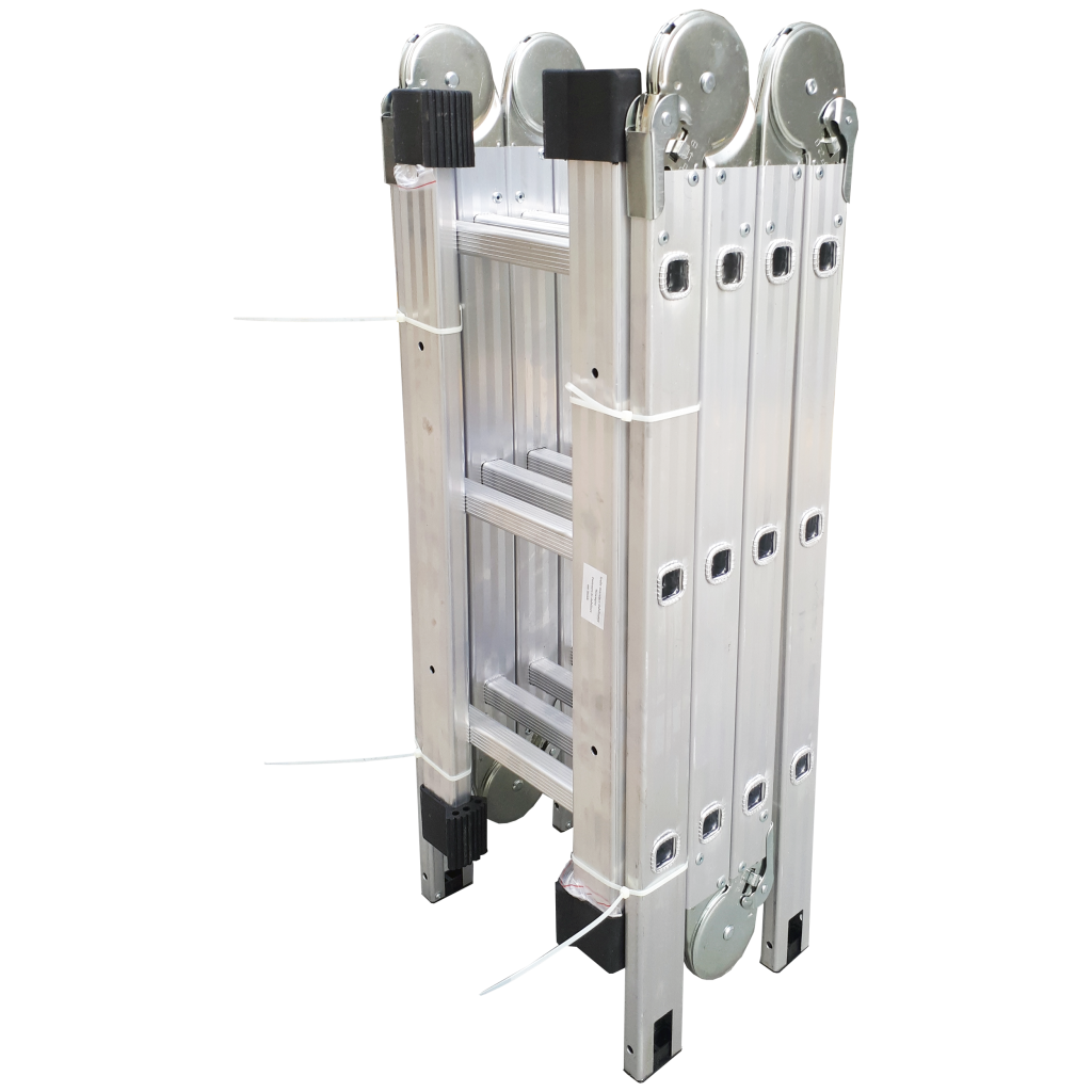 Trzyczęściowa uniwersalna drabina Eurostyle. Ilość przegród 3x7, max długość rozsuwana 3,99m, szerokość 454mm, końcówki zielono-czarne. Drabiny te są wykonane z lekkich materiałów, z naciskiem na lekkość i łatwość obsługi. Nadaje się do codziennego użytku w domu i firmach. Maksymalna ładowność 150 kg.