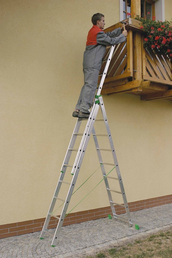 Trzyczęściowa uniwersalna drabina Eurostyle z regulacją stopnia. Ilość przegród 3x10, max długość rozsuwana 6,26 m, szerokość 454 mm, końcówki zielono-czarne. Drabiny te są wykonane z lekkich materiałów, z naciskiem na lekkość i łatwość obsługi. Nadaje się do codziennego użytku w domu i firmach. Maksymalna ładowność 150 kg.