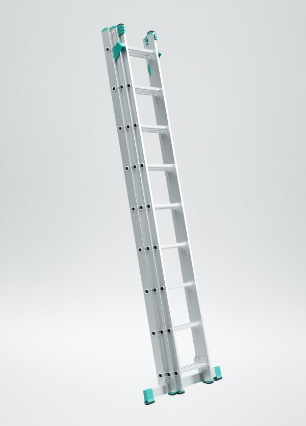 Trzyczęściowa uniwersalna drabina Eurostyle z regulacją stopnia. Ilość przegród 3x9, max długość rozsuwana 5,69 m, szerokość 454 mm, końcówki zielono-czarne. Drabiny te są wykonane z lekkich materiałów, z naciskiem na lekkość i łatwość obsługi. Nadaje się do codziennego użytku w domu i firmach. Maksymalna ładowność 150 kg.