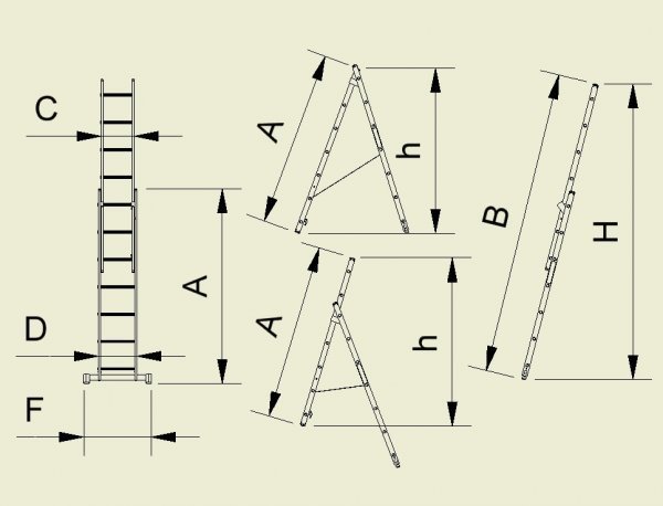 Dwuczęściowa uniwersalna drabina Eurostyle z regulacją stopnia. Ilość przegród 2x7, max długość rozsuwana 3,14 m, szerokość 397 mm, końcówki zielono-czarne. Drabiny te są wykonane z lekkich materiałów, z naciskiem na lekkość i łatwość obsługi. Nadaje się do codziennego użytku w domu i firmach. Maksymalna ładowność 150 kg.