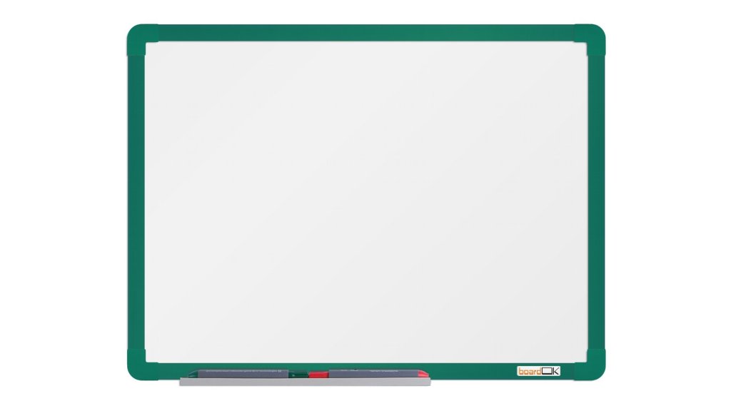 Biała tablica magnetyczna z wysokiej jakości powierzchnią emaliowaną (wypalaną w temperaturze 250°C). Powierzchnia przystosowana do pisania markerem, bardzo łatwa w czyszczeniu i utrzymaniu.