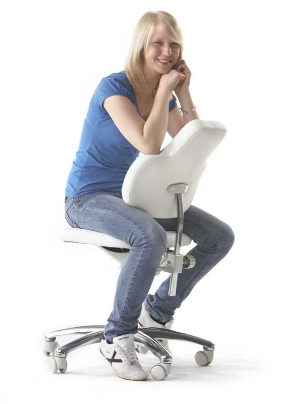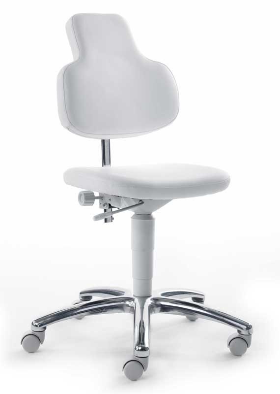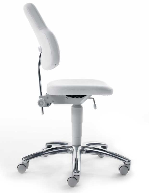 Fotel lekarski. Opatentowany system Move & Stop® umożliwia przechylanie fotelika we wszystkich kierunkach. Specjalnie zaprojektowany do stosowania w służbie zdrowia. Testowany klinicznie. Powierzchnia antybakteryjna. Możliwe kolory tapicerki: zielony, kość słoniowa, pomarańczowy, niebieski, czarny, biały. Całkowita wysokość krzesła 81 - 93 cm w zależności od pozycji. 5 lat gwarancji na krzesło, dożywotnia gwarancja na system Move & Stop®.