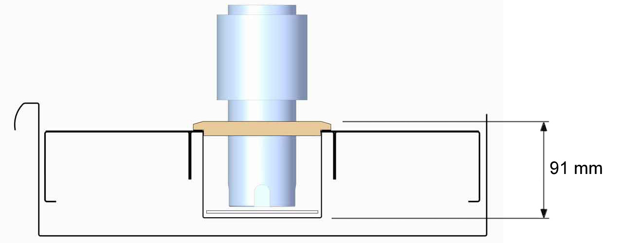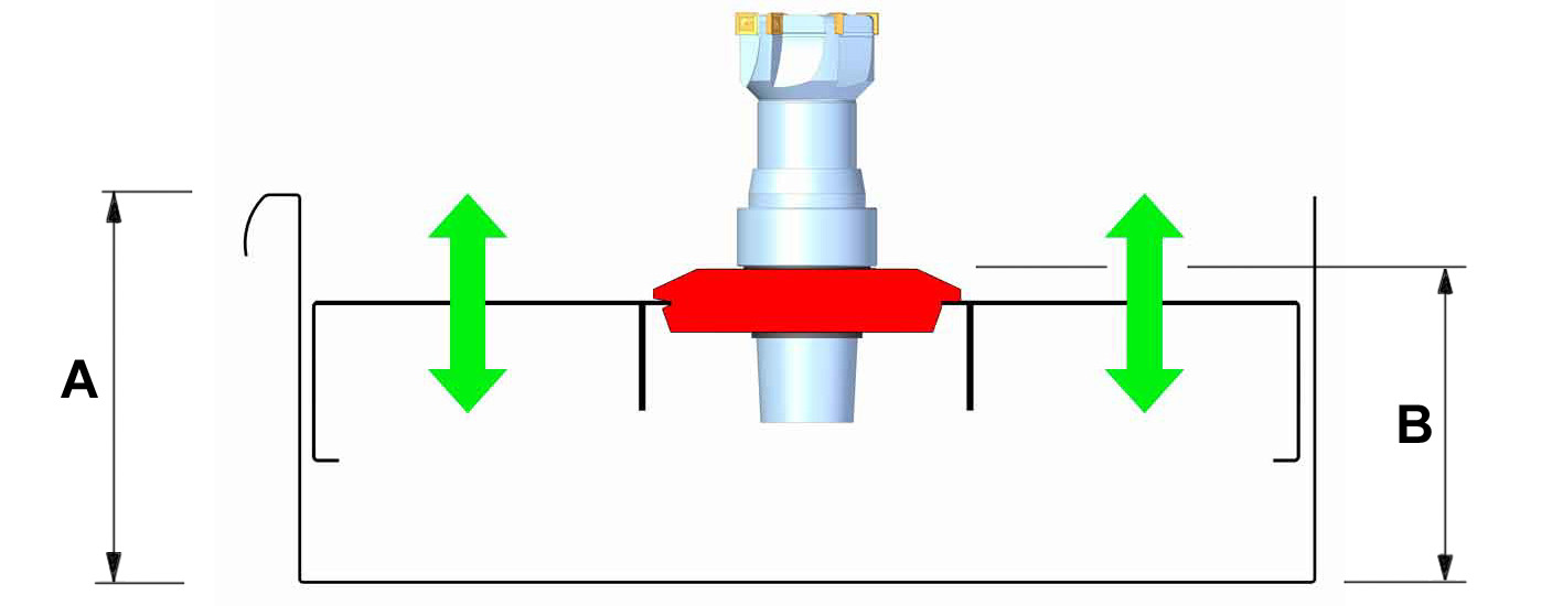 Výška kovové vaničky odpovídá délce upínací části nástrojů Thick Turret, proto můžete držáky Thick Turret skladovat v zásuvkách výšky čela 150 mm a vyšších.