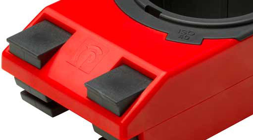 Plastové držáky jsou vyrobeny z nárazuvzdorného ABS plastu a v nosičích nebo nástrojových rámech jsou fixovány v požadované poloze dvěma pojistkami. Bez nářadí, bez šroubování!
