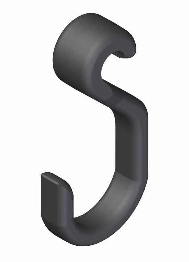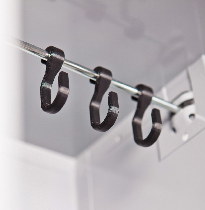 Plastikowy haczyk, zawieszany na okrągłej poprzeczce.