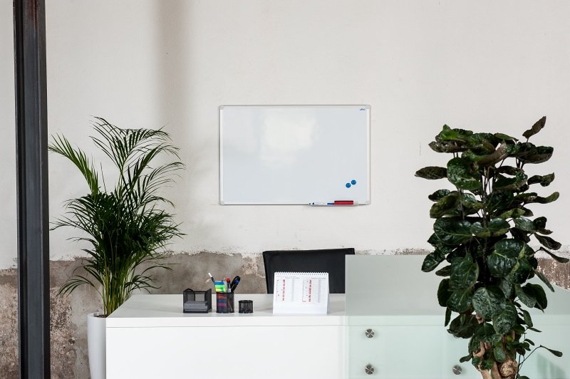 Jednoczęściowa ceramiczna tablica suchościeralna z anodowaną aluminiową ramą. Zawiera półkę do przechowywania markerów. W zestawie pełny opis i parametry