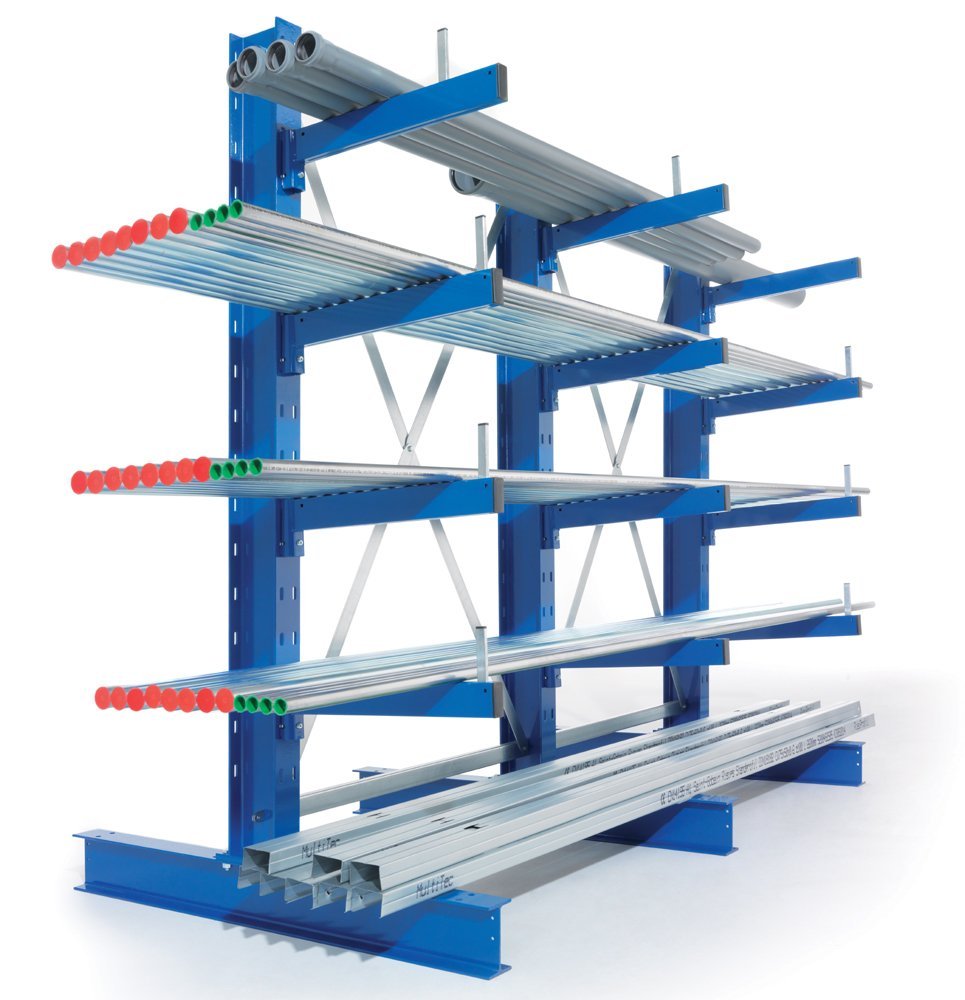 Regał średniego obciążenia do długich materiałów stojących i leżących, wysokość 2000, szerokość 1300, głębokość 500 mm, ilość ramion 4 na jeden słupek, nośność ramion 430 kg, nośność taśmy jednostronnej 2340 kg. Kolor RAL 5010 niebieski. Odbiór osobisty w Chrudimiu.
