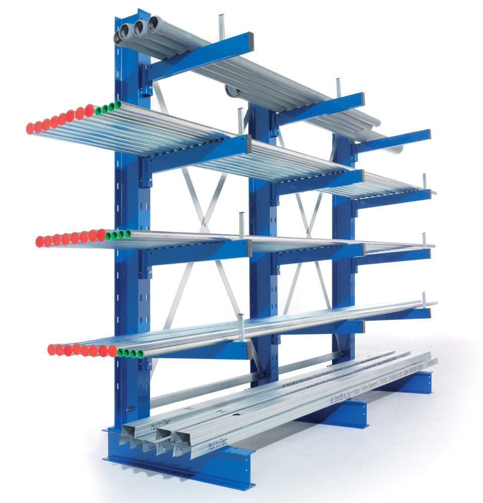 Regał o średnim obciążeniu do długich materiałów stojących i leżących. Wysokość 2000 - 3000 mm, szerokość 1000 lub 1300 mm, głębokość 500 lub 800 mm, liczba ramion 4 - 5 na jeden słupek, nośność ramion 250 lub 430 kg, nośność jednostronnej taśmy 1250 - 2340 kg, waga regałów 50 - 202 kg. Kolor niebieski RAL 5010.