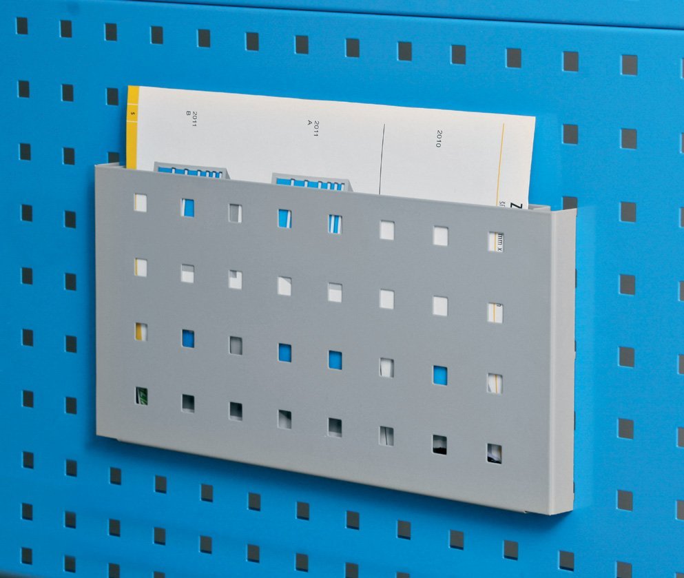 Perforowana kieszeń na drzwiach na dokumenty w formacie A4. Szerokość 350 mm, waga 1,2 kg.