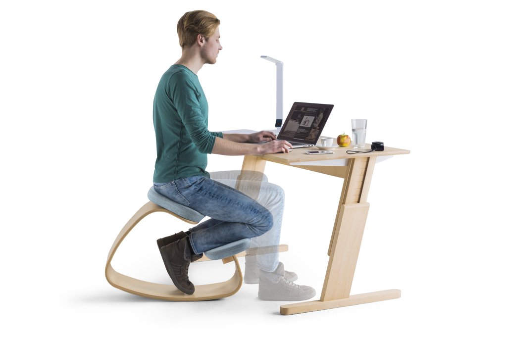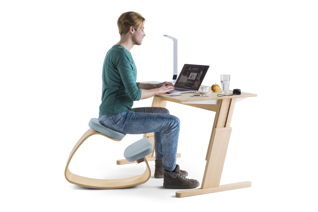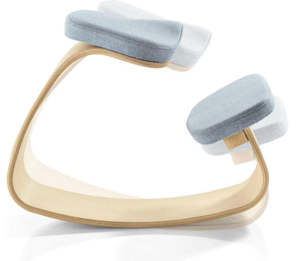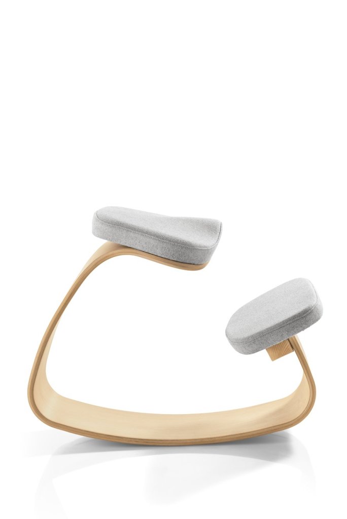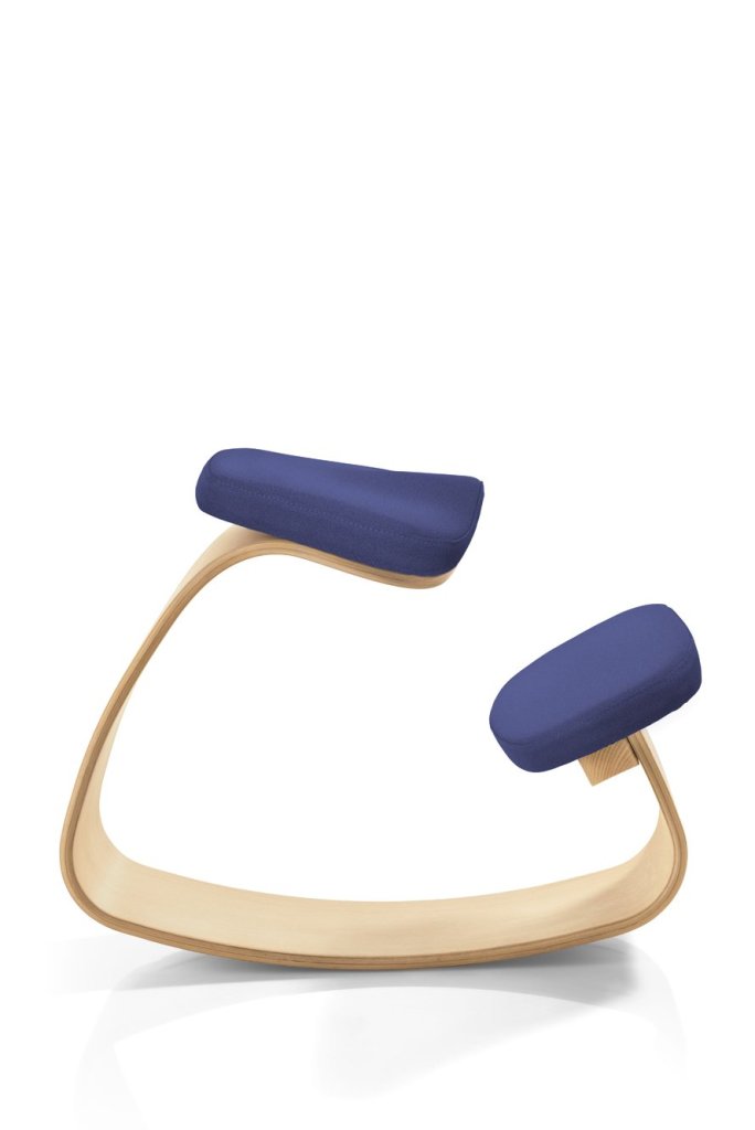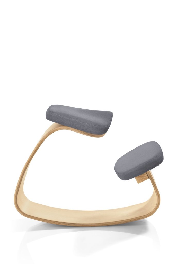 Podpórka na stojąco - Stołek balansowy Ercolino Ready o regulowanej wysokości 56-75 cm, wyposażony w ergonomicznie ukształtowane siedzisko 3D. Krzesło wykonane jest z profilowanej sklejki bukowej o grubości 14 mm z widocznymi okleinami.
