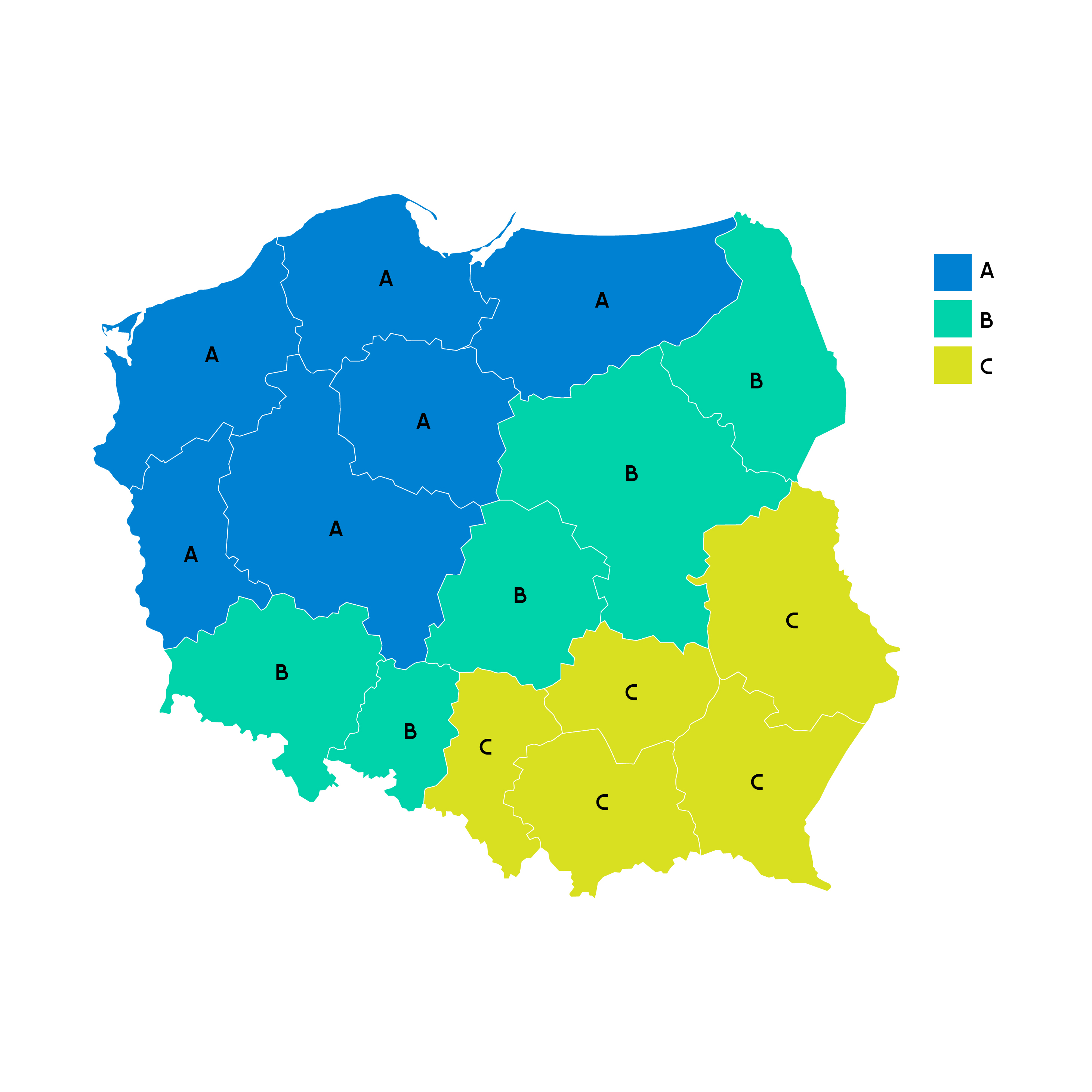 MAPA REGIONÓW SPRZEDAŻY A, B, C