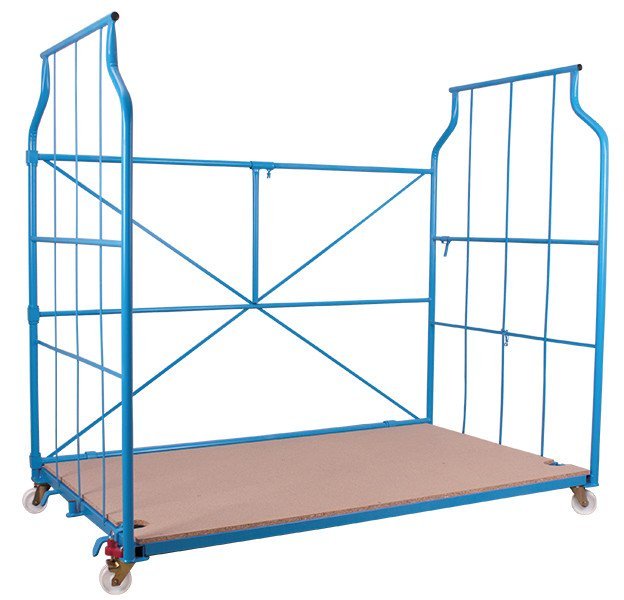 Standard Corlette® to mobilny kontener z trzema ścianami kratowymi, który można ustawiać jeden na drugim. Wymiary wysokość 1850 x szerokość 1200 x głębokość 1150 mm. Nadaje się do przechowywania i przenoszenia towarów. Możliwość sztaplowania na 3 poziomach wysokości, dzięki czemu możesz w pełni wykorzystać przestrzeń do przechowywania. Łatwa obsługa dzięki plastikowym kółkom (1x hamowane). Kolor RAL 5012. Na zamówienie istnieje możliwość modyfikacji wózków według Państwa życzeń!