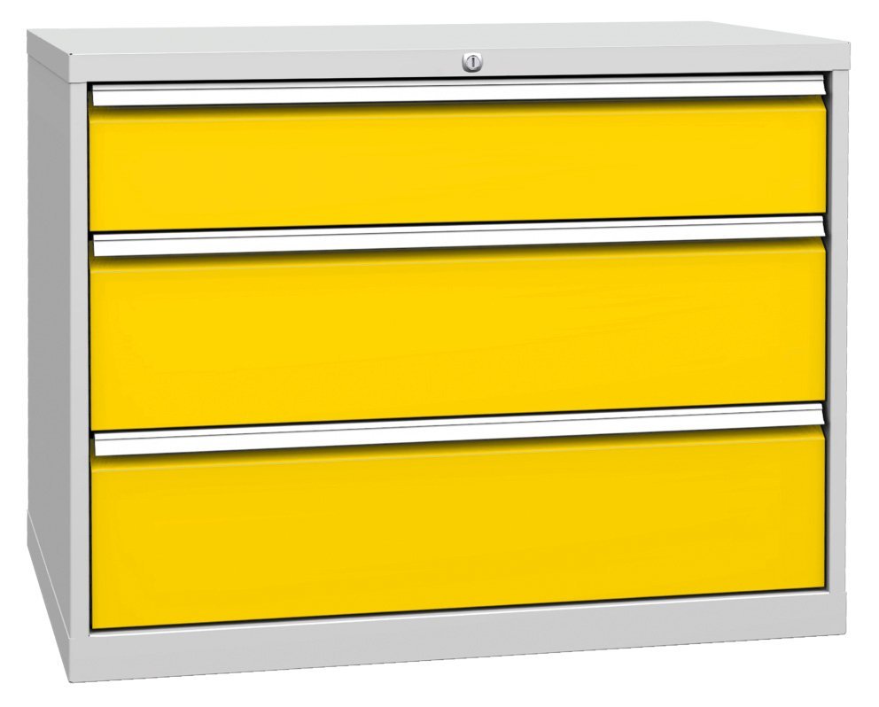 Pojemnik warsztatowy z trzema szufladami, szerokość 1000, wysokość 810, głębokość 700 mm. 1x nasadka 180, 2x 240 mm. Kolor korpusu RAL 7035 jasnoszary.