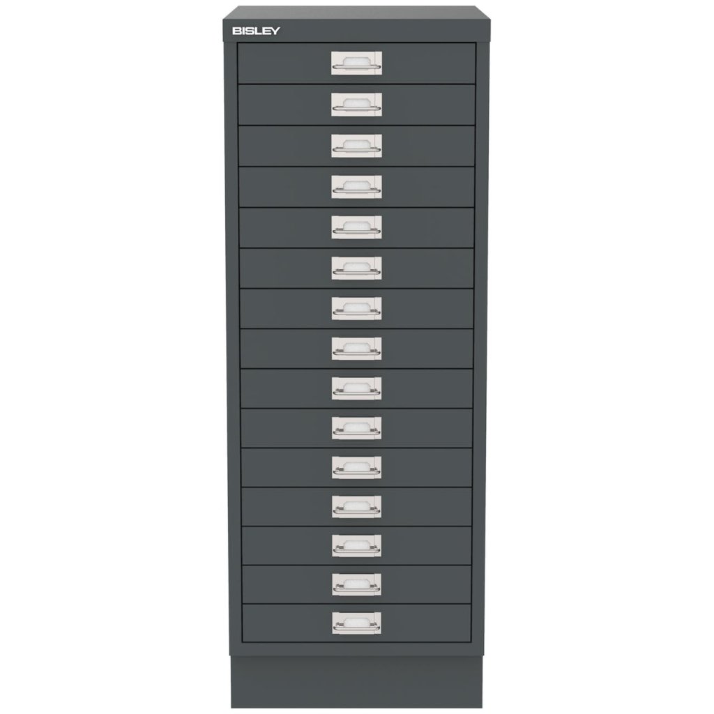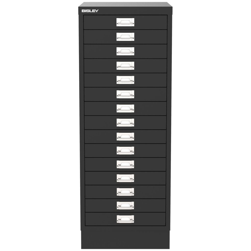 Szafka metalowa (format A3) z 15 szufladami, szerokość 349, wysokość 940, głębokość 432 mm. W komplecie cokół w kolorze czarnym lub na zamówienie w kolorze szafki.