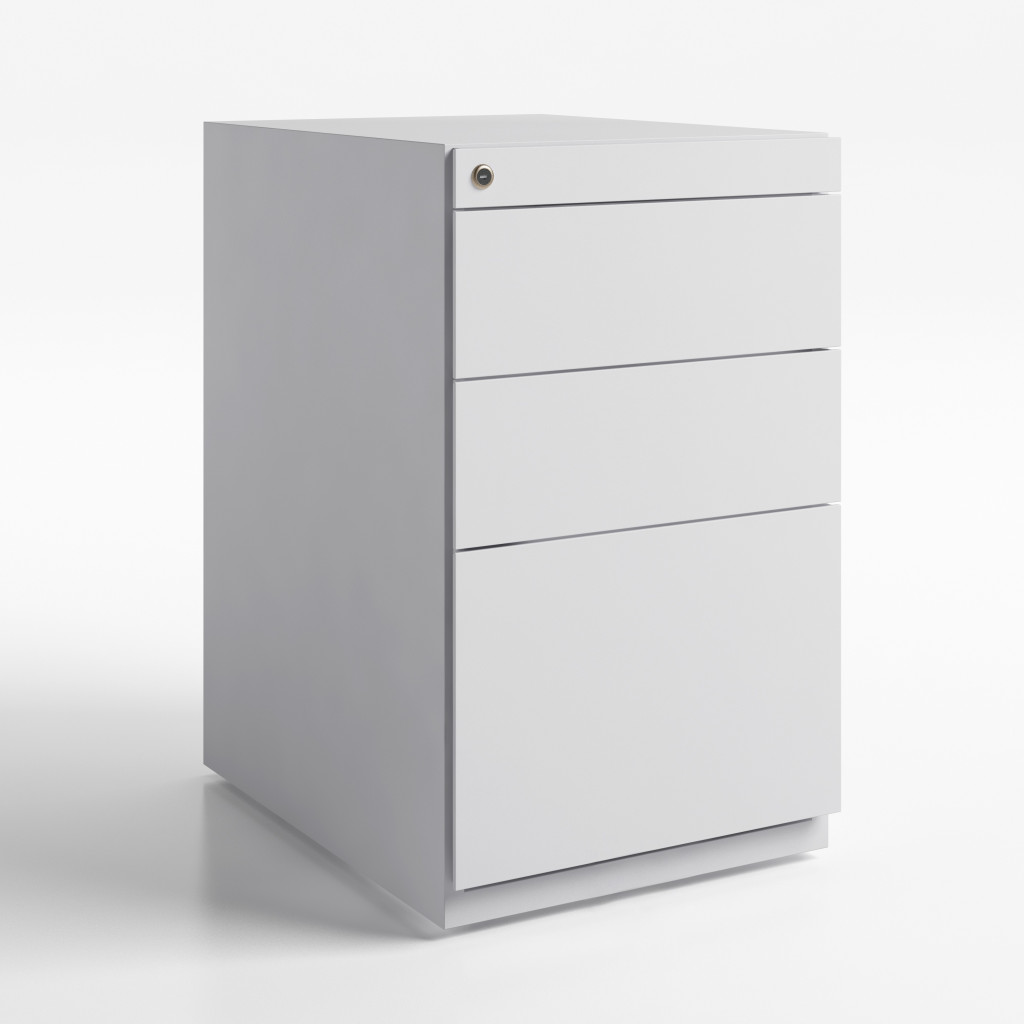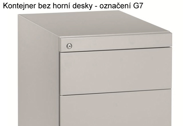 Kontener biurowy z zamkiem centralnym, dwie szuflady, jedna przystosowana do zawieszania teczek. Wysokość 698 - 718, szerokość 420, głębokość 565 mm. Wariant bez blatu. Wysuwalność szuflad mniejszych 80 lub 100%, wysuwalność dolnej, największej szuflady 100%.