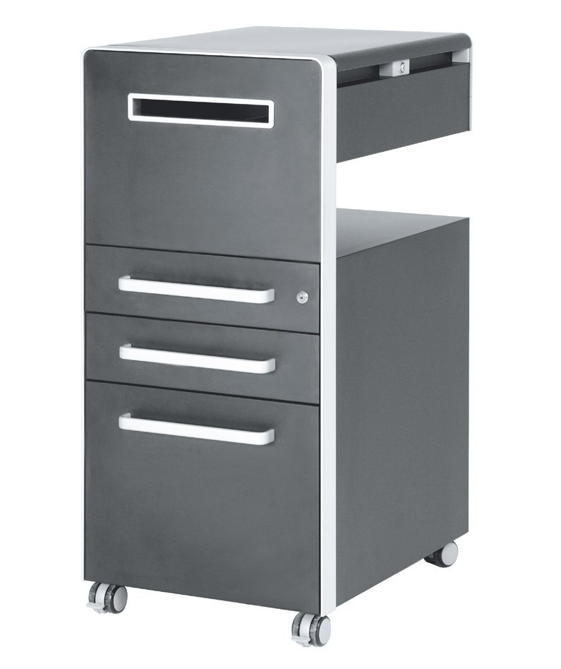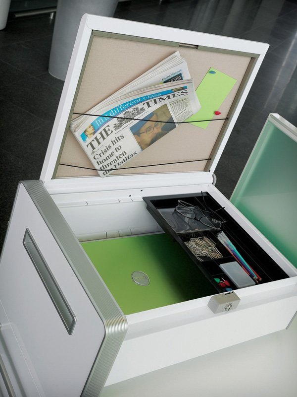 Przenośny kontener osobisty BITE. Idealny do przechowywania dokumentów i rzeczy osobistych. Z łatwością przeniesiesz go w dowolne miejsce. Wysokość 930 x szerokość 428 x głębokość 573 mm. Wersja prawa lub lewa, pokrywa na zawiasach może służyć jako tablica.