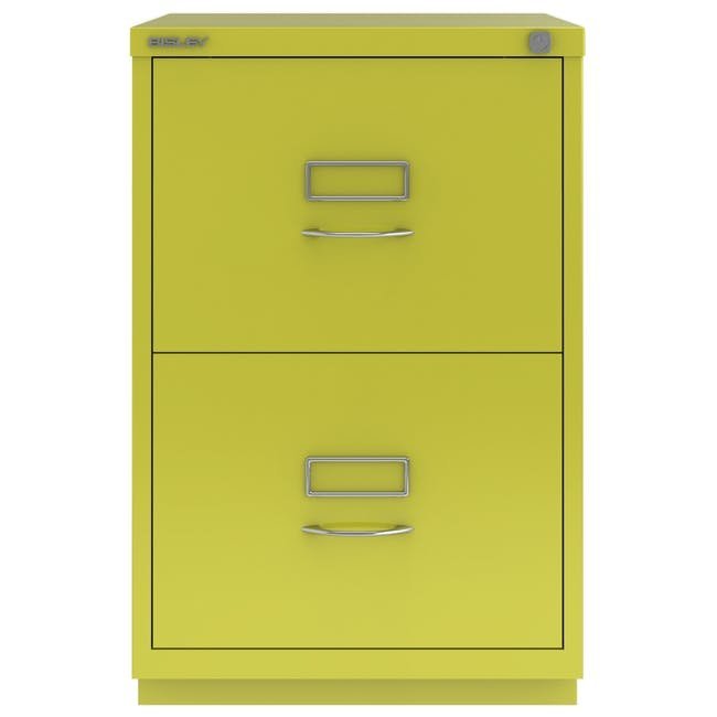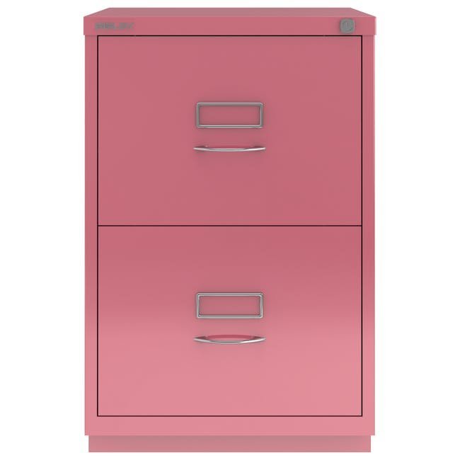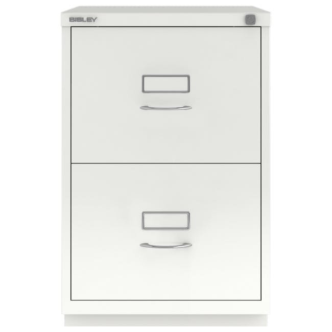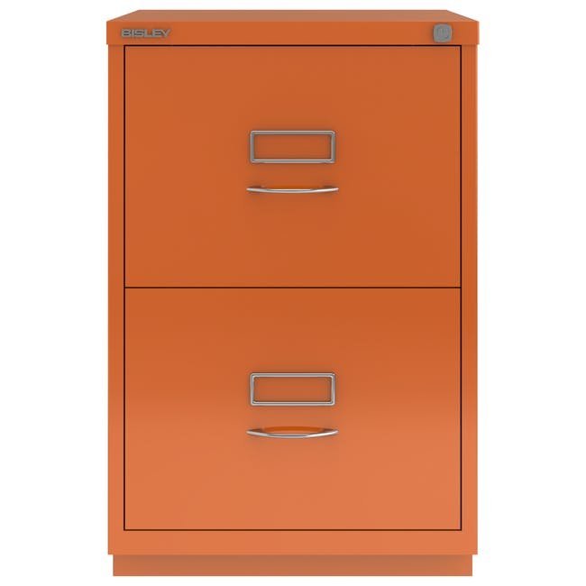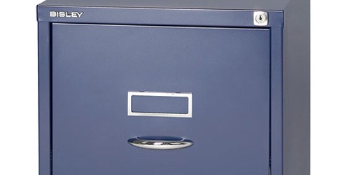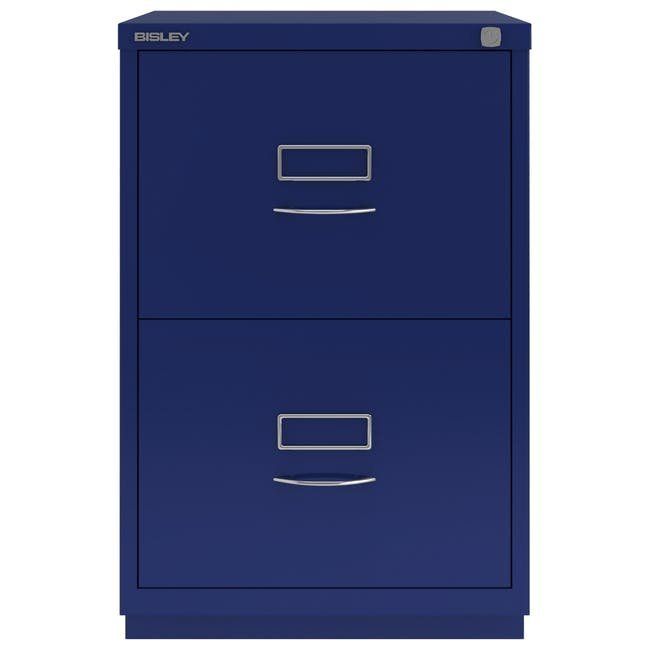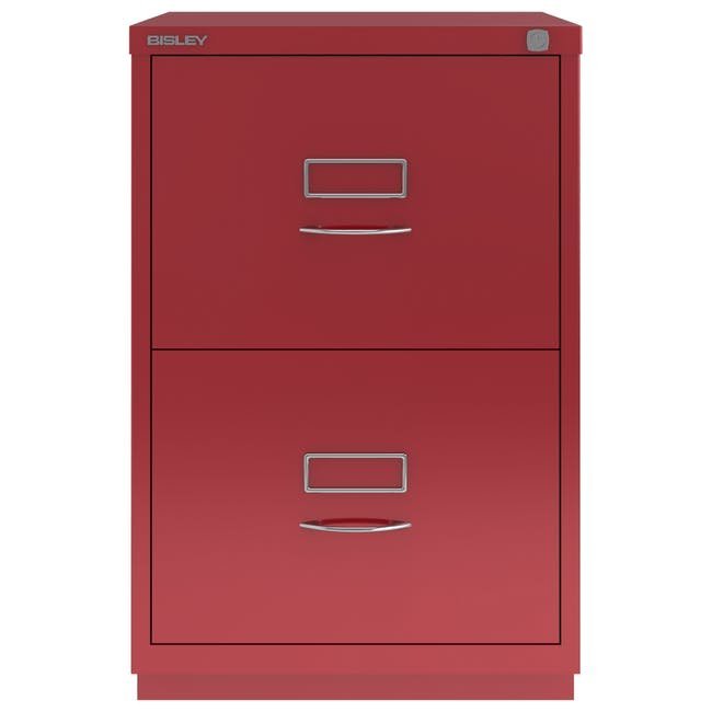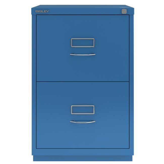 Szafka na dokumenty metalowa z dwiema szufladami Bisley 2FE, wysokość 711, szerokość 470, głębokość 470 mm, różne kolory, klasyczne chromowane uchwyty. Szuflady wyposażone są w wyjmowaną listwę redukcyjną do zawieszania segregatorów w formacie A4.