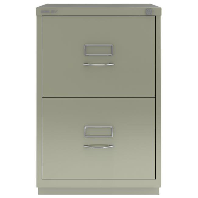 Metalowa szafka kartotekowa z dwiema szufladami na dokumenty lub segregatory wiszące w formacie A4 lub Foolscap, szerokość 470, wysokość 711, głębokość 622 mm, zamek centralny, różne kolory. Szafka na dokumenty służy przede wszystkim do przechowywania szerszych formatów Foolscap, ale każda szuflada jest wyposażona w organizer do przechowywania wiszących segregatorów A4 lub Folio.