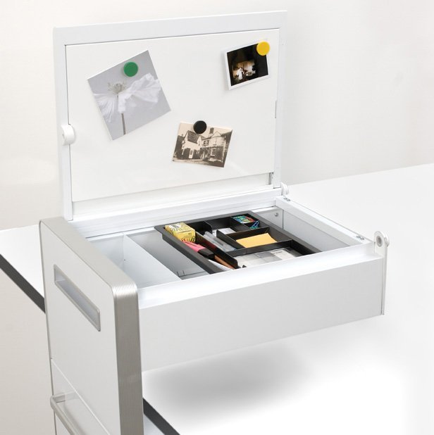 Przenośny kontener osobisty BITE. Idealny do przechowywania dokumentów i rzeczy osobistych, z łatwością przemieścisz go w dowolne miejsce. Wysokość 930 x szerokość 428 x głębokość 573 mm. Wersja prawa lub lewa, pokrywa na zawiasach może służyć jako tablica.