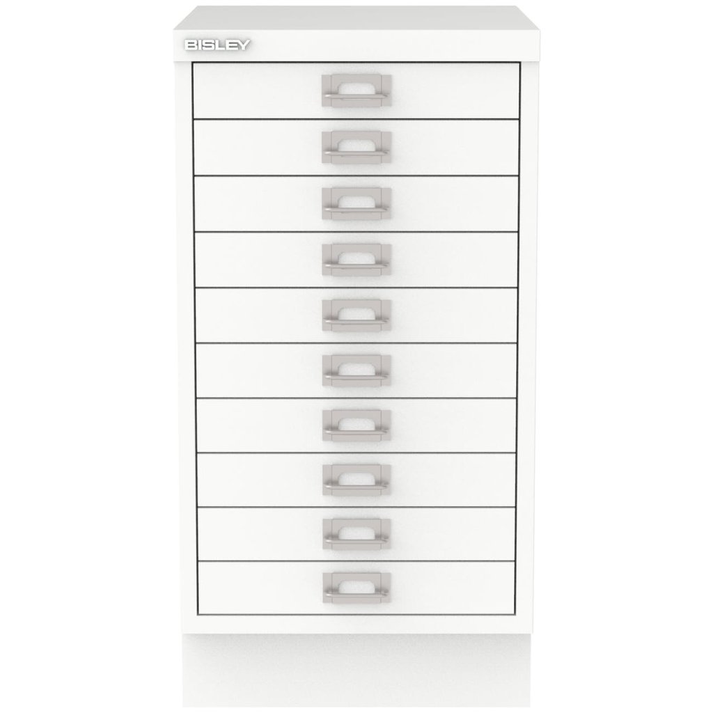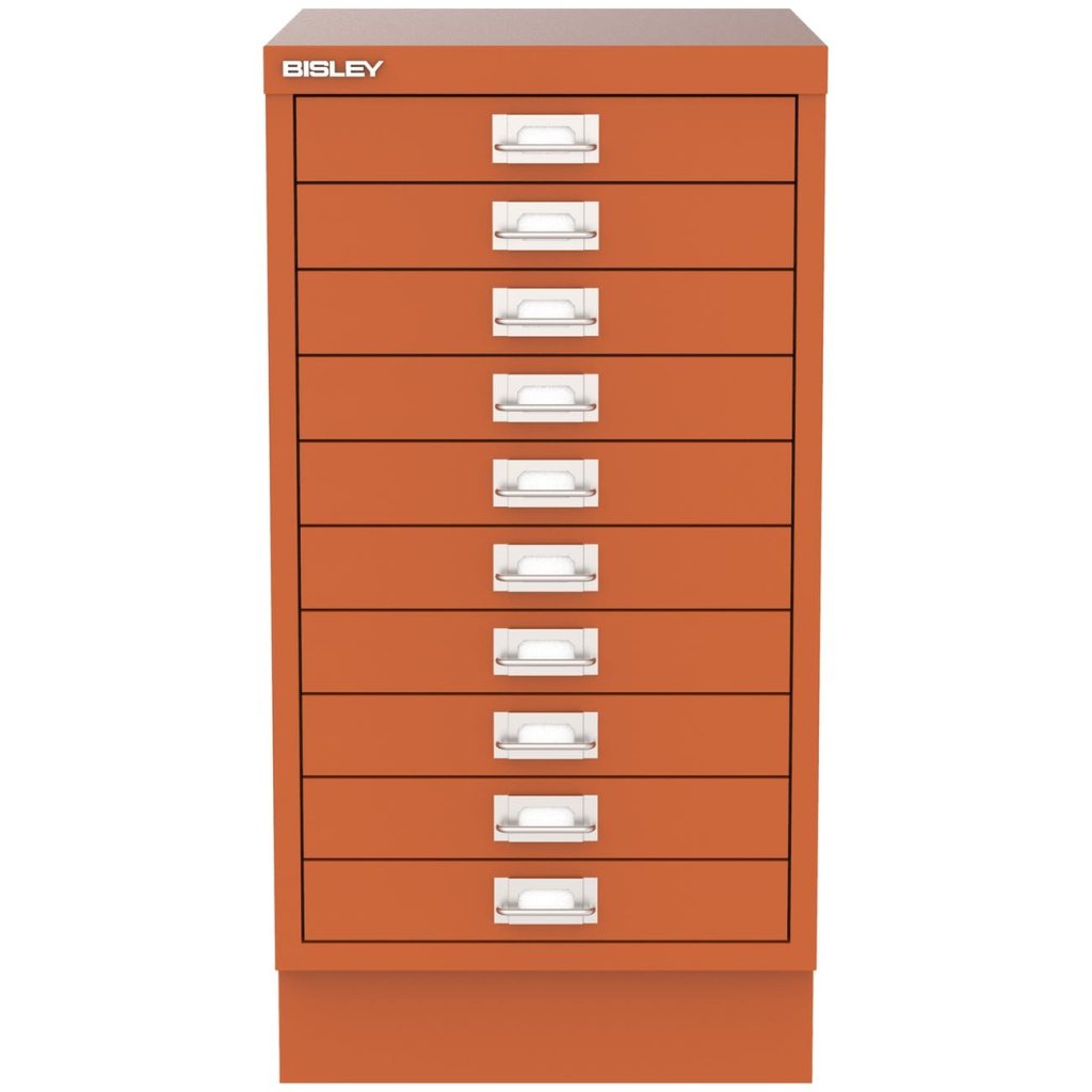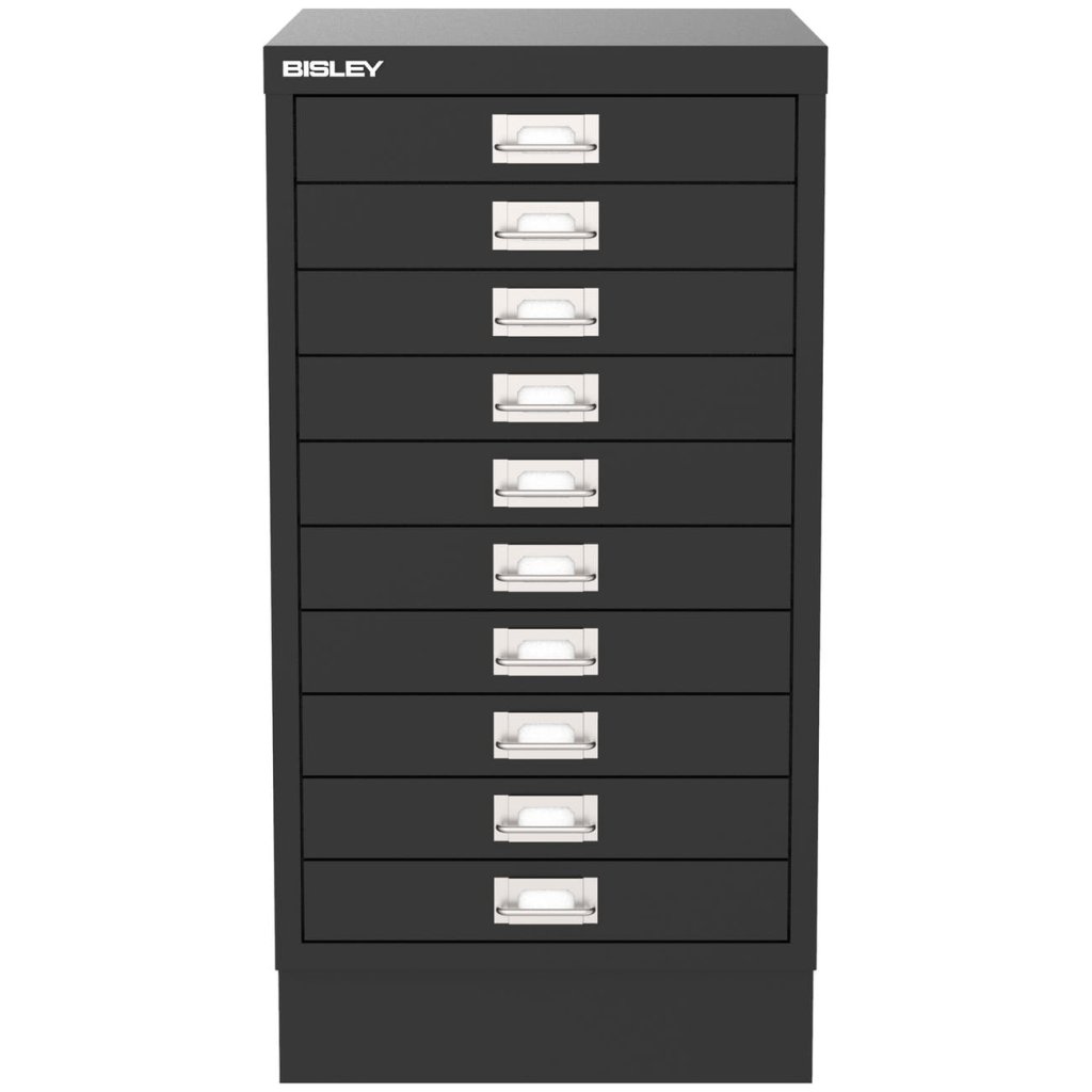 Szafa metalowa (do formatu A3) z 10 szufladami, szerokość 349, wysokość 670, głębokość 432 mm. W komplecie cokół w kolorze czarnym lub na zamówienie w kolorze szafki.