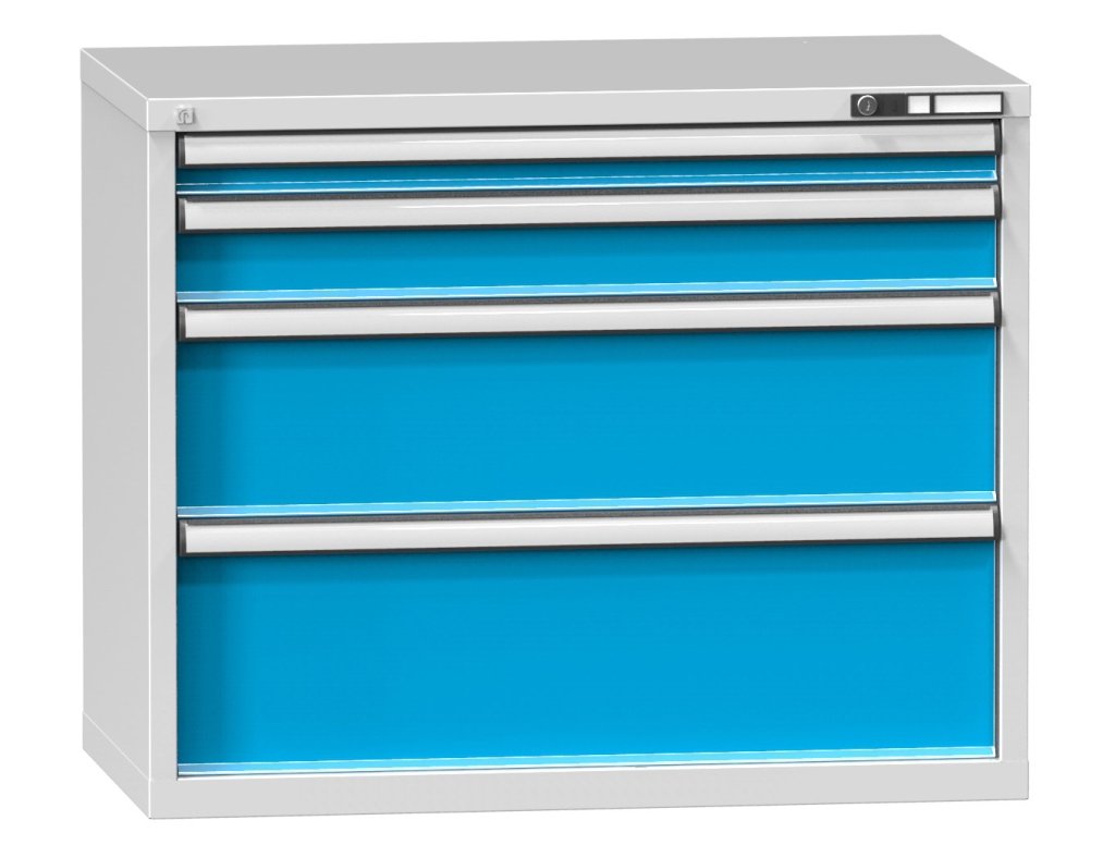 Kontenerek z szufladami, 4 szuflady, wysokość 840, szerokość 1037, głębokość 630 mm. Zastosowanie w zestawach stołowych o głębokości blatu 700 mm. Wymiary wewnętrzne szuflady 918 x 459 mm.