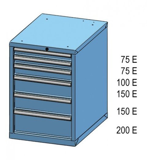 Szafka z szufladami, 7 szuflad, wysokość 840, szerokość 578, głębokość 780 mm. Zastosowanie w zestawach stołowych o głębokości blatu 800 mm. Wymiary wewnętrzne szuflady 459 x 612 mm.