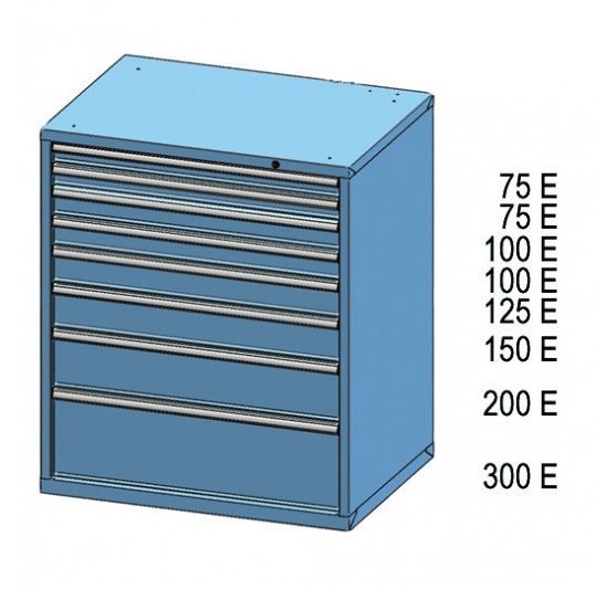 Szafka z szufladami, 8 szuflad, wysokość 1215, szerokość 1037, głębokość 780 mm. Wymiary wewnętrzne szuflady 918 x 612 mm.