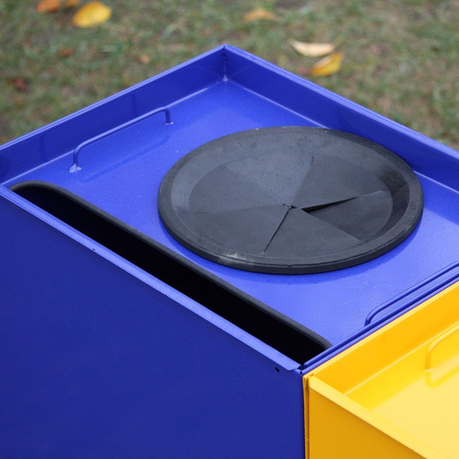 Kosz do segregacji odpadów nadaje się do sortowania śmieci w budynkach administracyjnych, szkołach, urzędach itp. Swobodnie zdejmowana pokrywa z odpowiednim otworem wrzutowym. Pojemność 100 l. Wymiary w mm (wys. x szer. x gł.) 760 x 400 x 300.