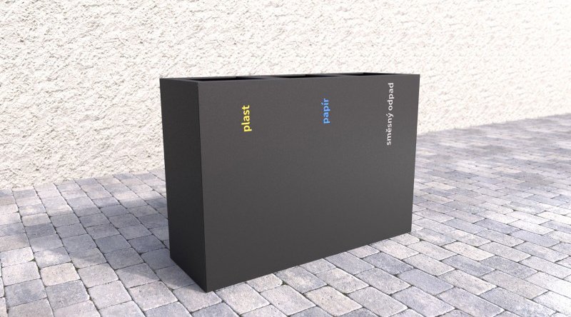 Kosz do segregacji odpadów, metalowy, do użytku zewnętrznego i wewnętrznego. Obróbka powierzchni farbą proszkową lub cynkiem ogniowym. Kosz jest dostarczany w stanie złożonym.