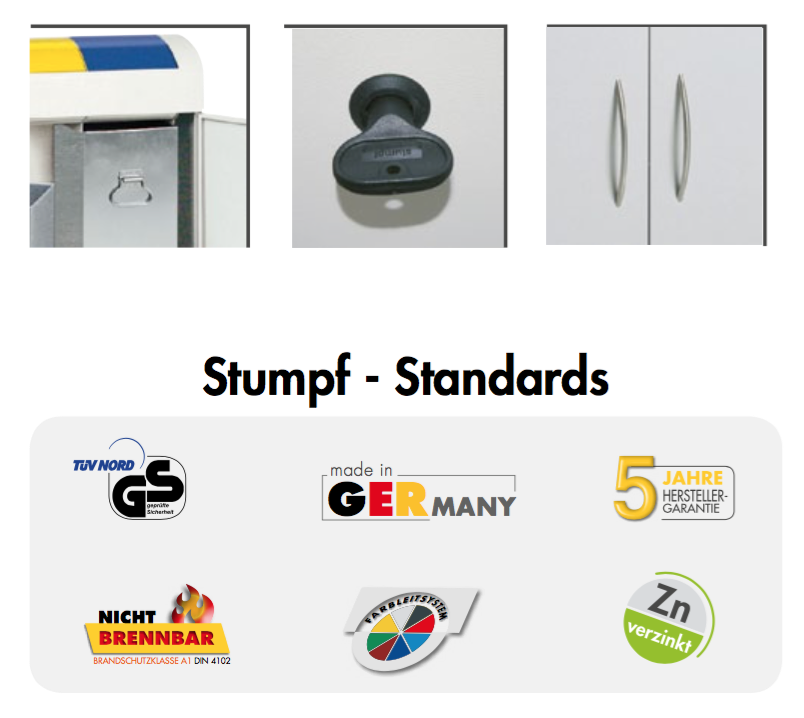 Pojemnik do segregacji odpadów, metalowy, o wymiarach - wysokość 1000 x szerokość 1210 x głębokość 300 mm. Cała konstrukcja posiada powierzchnię ocynkowaną. Zamknięcie posiada solidne osłony w 3 kolorach dla wyróżnienia. Klapy są zawsze otwarte – odpady można wrzucać bez dotykania kosza. Kosz posiada zamykane drzwiczki z przodu oraz wyjmowane kosze wewnętrzne 3x 45 l. Dwie regulowane nóżki wyrównujące nierówności podłoża. Piktogramy nie są częścią dostawy.