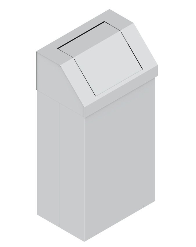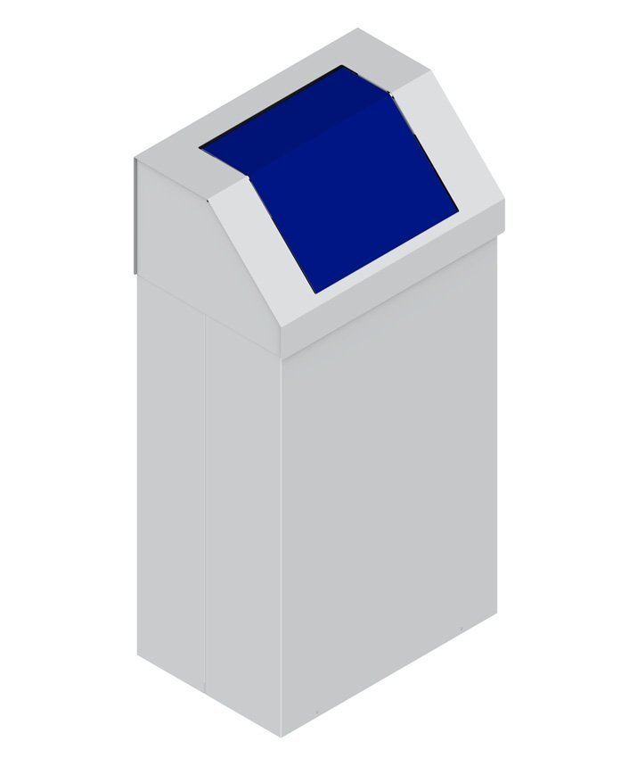 Metalowy kosz na śmieci odpowiedni do sortowania odpadów. Wysokość 900 x szerokość 450 x głębokość 300 mm, pojemność 90 l. Kolor kosza jasnoszary RAL 7035, różne kolory pokrywy w celu rozróżnienia rodzaju odpadów. Tylko do użytku wewnętrznego.