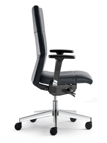 Krzesło biurowe Lyra click, wysokie oparcie, mechanizm synchroniczny SY, regulacja wysokości oparcia UP-DOWN, tłok gazowy, kółka, czarny nylonowy krzyż. Cena bez podłokietników.