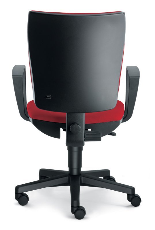 Obrotowe krzesło biurowe, średnie siedzisko, średnie oparcie, regulacja wysokości, mechanizm synchroniczny SYS z boczną regulacją sztywności oparcia, czarny nylonowy krzyż, koła 60 mm, tłok gazowy, cena bez podłokietników.
