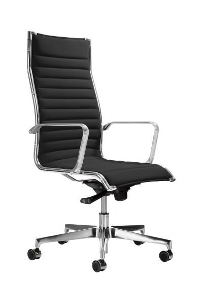 Krzesło biurowe z wysokim oparciem, chromowaną ramą, mechanizmem bujania Relax (blokada w 1 pozycji) lub Multiblok Lux (blokada w 5 pozycjach), cena zawiera podłokietniki.