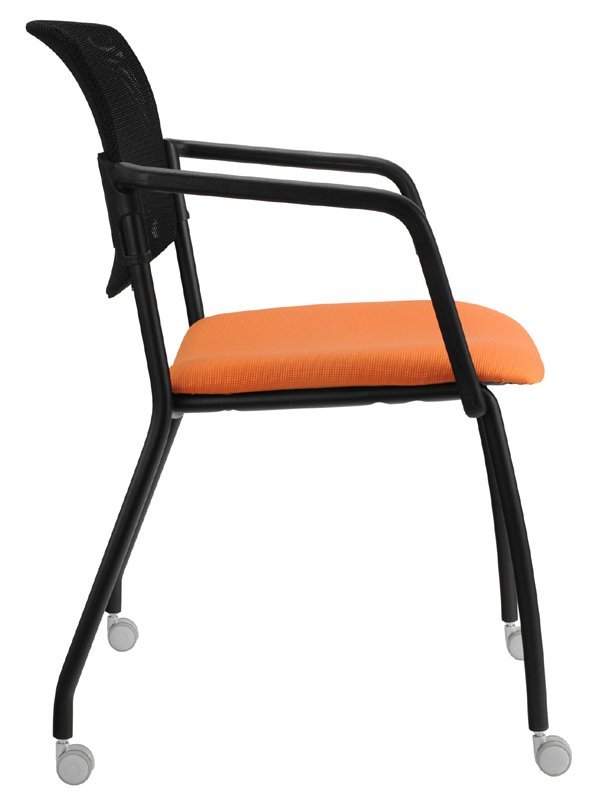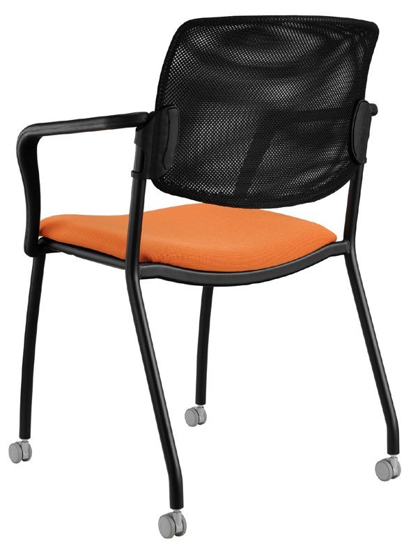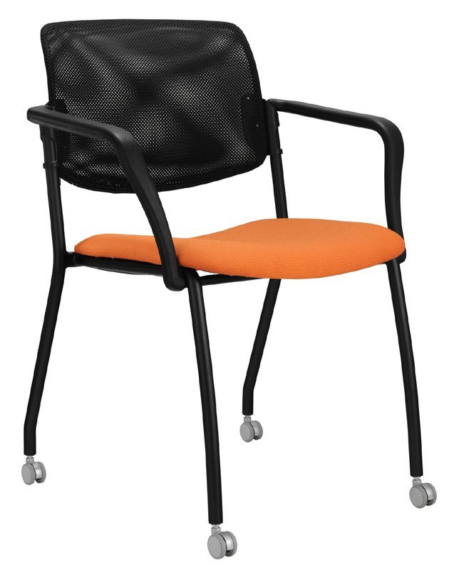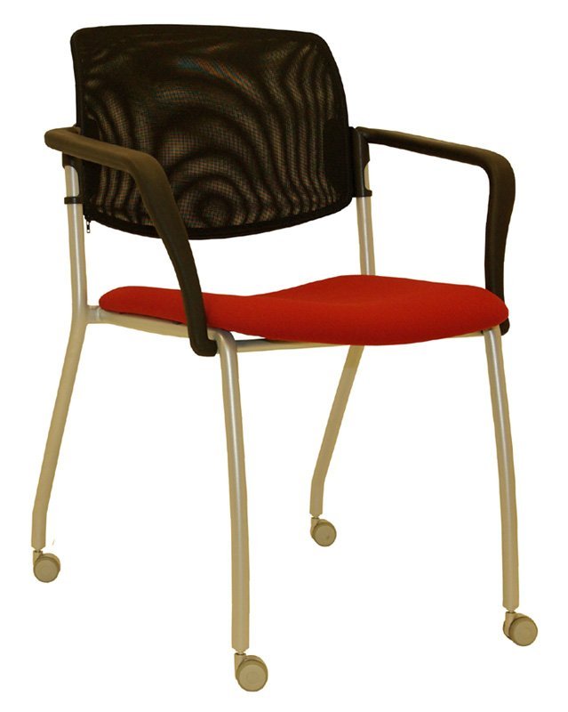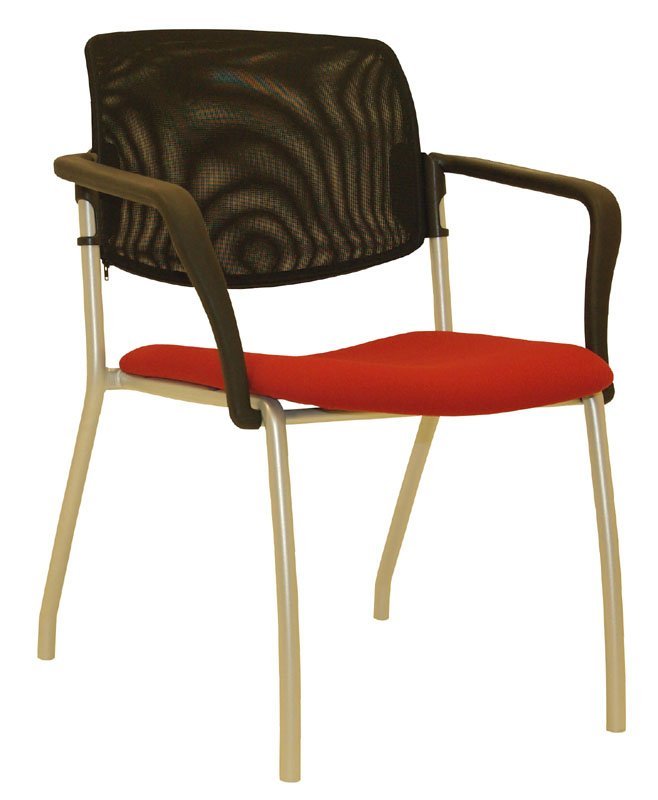 Krzesło konferencyjne tapicerowane o bardzo solidnej konstrukcji, szerokie siedzisko, wysokiej jakości okładzina oparcia, pod siedziskiem obszyte tkaniną. Można uzupełnić podłokietnikami, ramą w kolorze czarnym, srebrnym lub chromowanym. Oparcie plastikowe lub tapicerowane, cena bez podłokietników w tkaninie podstawowej. Nośność 130 kg, możliwość układania na sobie do 5 szt.