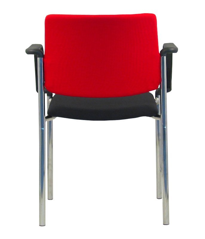Krzesło konferencyjne z możliwością sztaplowania, czteronożna stalowa rama w kolorze czarnym N1, srebrnym N2 lub chromowanym N4, siedzisko i oparcie tapicerowane. Tył również jest tapicerowany.
