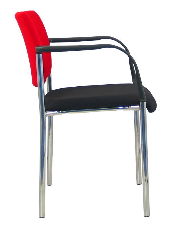 Krzesło konferencyjne z możliwością sztaplowania, oparcie z tworzywa sztucznego w różnych kolorach, rama z drutu stalowego chromowanego, siedzisko tapicerowane.