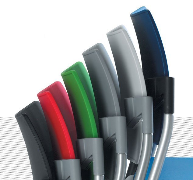 Krzesło konferencyjne z możliwością sztaplowania, oparcie z tworzywa sztucznego w różnych kolorach, rama z drutu stalowego chromowanego, siedzisko tapicerowane.