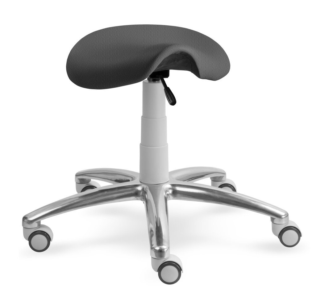 Krzesło obrotowe z siedziskiem w kształcie siodła. Fotel egzaminacyjny z wyprofilowanym siedziskiem typu „siodło”. Ergonomiczne, stabilne siedzisko. Szerokość siedziska 42 cm.