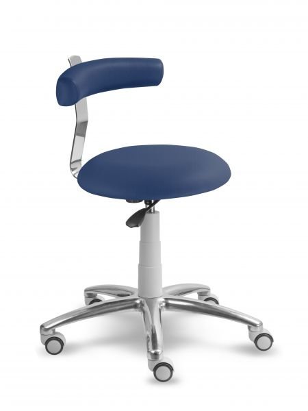 Krzesło dentystyczne obrotowe z oparciem, krzyż z polerowanego aluminium, kolor ramy jasnoszary RAL 7035, tapicerka z tkaniny, nadającej się do prania sztucznej skóry lub skóry.
