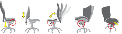 Krzesło obrotowe biurowe i medyczne z oddychającym polimerowym oparciem. Krzesło wyposażone jest w mechanizm synchroniczny z możliwością regulacji wysokości i głębokości siedziska, wysokości i nachylenia oparcia. Mechanizm podpierający wyposażony jest w regulację oporu nacisku pleców w zależności od ciężaru osoby siedzącej, tak aby siedzenie było jak najbardziej przyjemne, dzięki czemu można ćwiczyć aktywne siedzenie bez blokowania się w określonej pozycji.